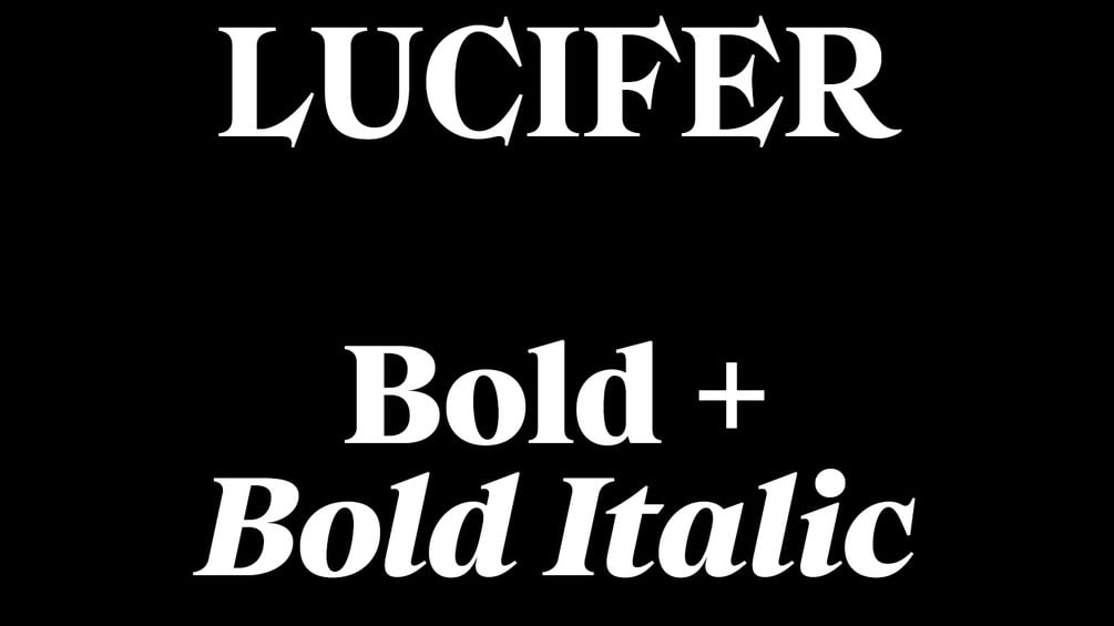 While Lucifer takes many of the unique visual qualities of its historical reference material, it is also optimised for the demands of contemporary design professionals. Its expressive aesthetic excels in wordmarks, headlines, and poster designs. At the same time, the type system works just as well in various kinds of running text, which makes it a respectable, unique workhorse type family.