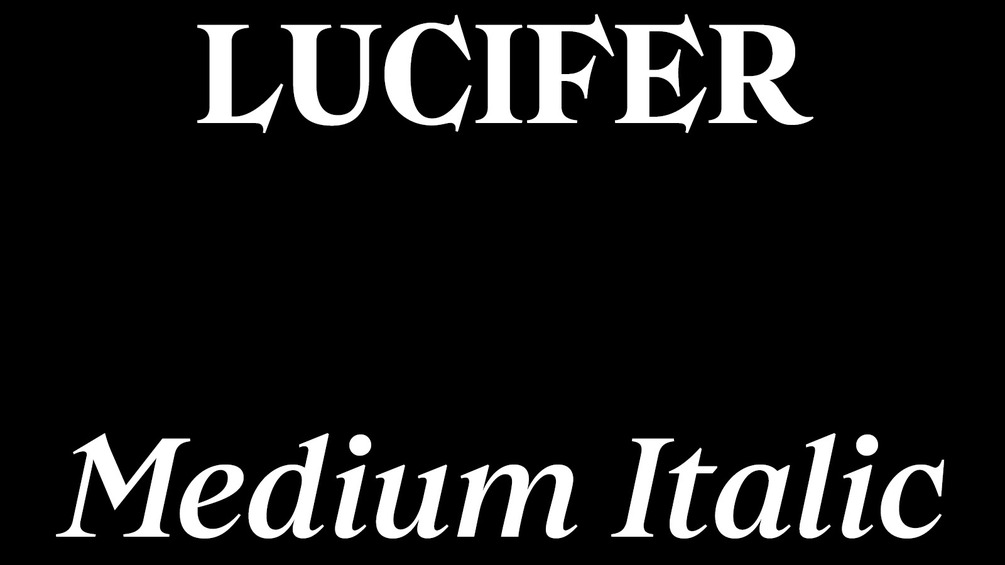 While Lucifer takes many of the unique visual qualities of its historical reference material, it is also optimised for the demands of contemporary design professionals. Its expressive aesthetic excels in wordmarks, headlines, and poster designs. At the same time, the type system works just as well in various kinds of running text, which makes it a respectable, unique workhorse type family.