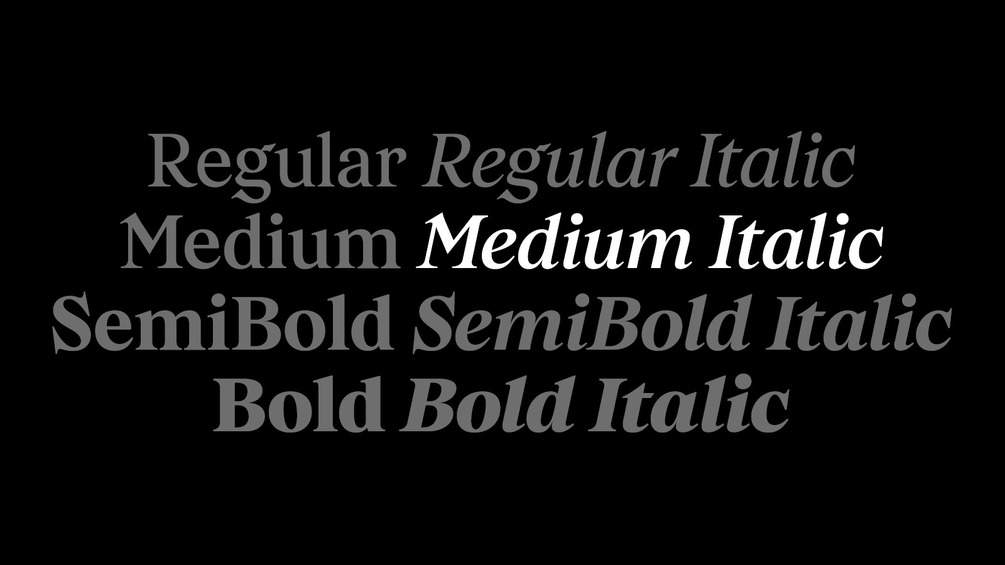 The type family consists of 8 cuts, which are Regular, Medium, SemiBold, and Bold accompanied by their respective italics. In addition, it supports a wide range of Latin-based languages, including Vietnamese and Standard Mandarin Chinese via the official romanisation system Pinyin to ensure the usability of the typeface in a broader international context.