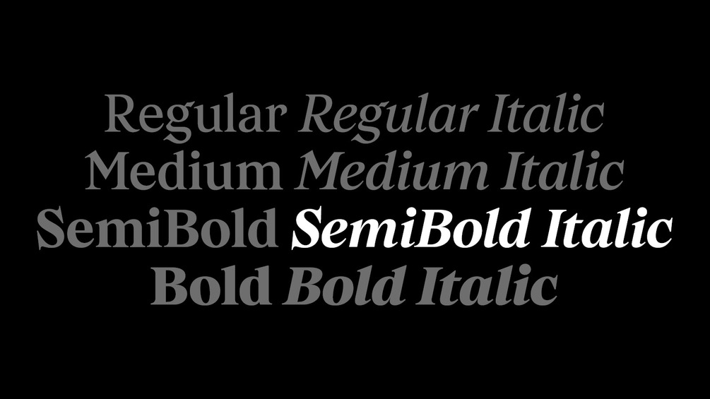 The type family consists of 8 cuts, which are Regular, Medium, SemiBold, and Bold accompanied by their respective italics. In addition, it supports a wide range of Latin-based languages, including Vietnamese and Standard Mandarin Chinese via the official romanisation system Pinyin to ensure the usability of the typeface in a broader international context.