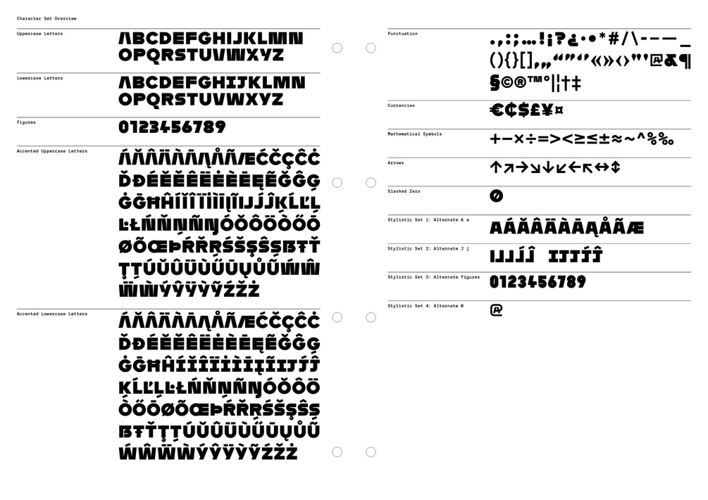Monopol is an expressive all-caps typeface with clean, geometric shapes and resolute aesthetics. The typeface features sharp angles and consistent strokes, giving the heavier styles a bold presence and the thinner styles a more elegant and lightweight look. The full family includes five predefined styles (Bold, SemiBold, Regular, Light, Thin) and a variable font, allowing users to adjust the weight precisely. Monopol is ideal for strong headlines, impactful posters, and striking wordmarks. The Bold style was initially released as a standalone typeface in 2020, followed by an additional Thin weight and a separate Kompakt style in 2021. The fully reworked and expanded Monopol 2.0 was launched in 2024.